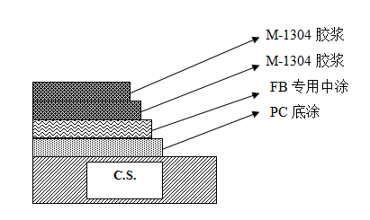 1.2 底涂PC干燥后(一般為涂刷后一小時以上至一周以內(nèi)),再全面均勻地涂中涂FB專用。FB專用為底涂PC與粘接劑M-1304的調(diào)和物,在現(xiàn)場按用量現(xiàn)調(diào)現(xiàn)用,配比比例為PC:M-1304=7:3,調(diào)和方法為將兩種涂料按比例配合后,用手持電動工具充分?jǐn)嚢柚粱旌暇鶆颉?/span>