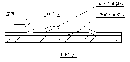 g、 膠板的搭邊應(yīng)錯開,不得出現(xiàn)“十”字縫現(xiàn)象,并保證間距100mm以上。