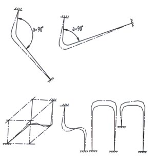 將直管彎曲成一定的幾何形狀,便是回折彎式補償器,常用的形狀有方形和園形(圖2)。