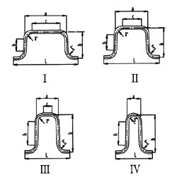 方形補償器選型確定后即可按圖4及有關標準系列數據進行制造。方形補償器由管子煨制而成,尺寸較小的可用一根管子煨制,大尺寸的可用二根或三根管子煨制。由于補償器工作時,其頂部受力最大,因而頂部應用一根管子煨制,不允許焊口存在。其煨制工藝有冷彎及熱彎兩種。