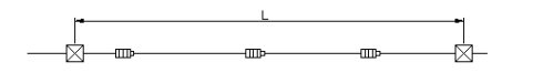 如圖所示,安裝一次性補償器的管段應與其他管段用固定墩隔開,以確保吸收定長管道預熱伸長量。為確保其精確,可在預熱前計算定長管道理論伸長量,然后在各一次性補償器上作出標記,使各個一次性補償器壓縮量之和等于定長管道的計算伸長量,待預熱伸長到位時,將補償器二次焊口焊接固定。管道在運行中不再有伸縮運動,其溫度變化引起的管道長度伸縮將轉(zhuǎn)化為管道的內(nèi)應力。