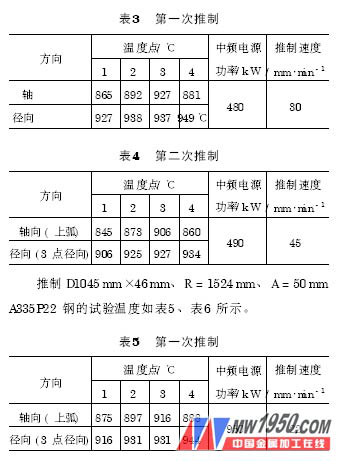 ( 4) 為保證壁厚及順利成形,WB36 材質加熱溫度最高點880 900 ℃,A335P22 材質加熱溫度最高點900920 ℃。