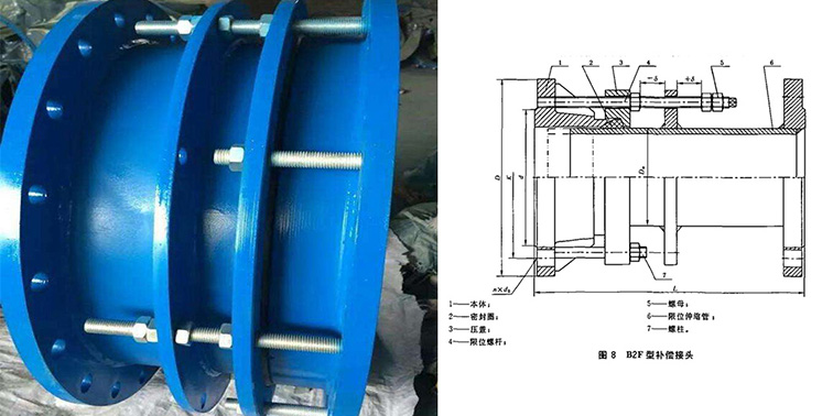 雙法蘭松套限位補償接頭適用于兩邊均與法蘭連接,安裝時調整產品兩端與法蘭的連接長度,對角依次均勻擰緊壓蓋螺栓,再調整好限位螺母,這樣就能讓管道在伸縮量范圍內可以自由伸縮,鎖定伸縮量,確保管道的安全運行。