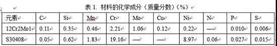 評(píng)定用材料為12Cr2Mo1和S30408不銹鋼,規(guī)格均為400mm×150mm×10mm,兩種材料的化學(xué)成分和如表1所示