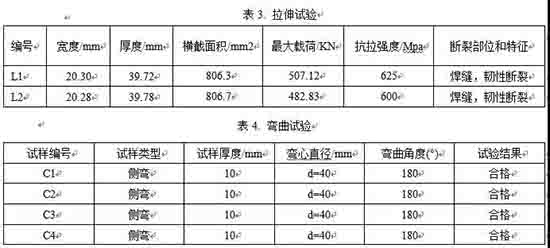 由上述數(shù)據(jù)可知,拉伸、彎曲和沖擊試驗(yàn)都合格,說明所制定的焊接工藝滿足要求,焊接接頭的性能符合規(guī)定。