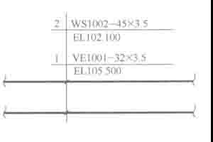 管道號和管徑標注在管道上方,所有垂直管道不注長度尺寸,標注水平管道的標高“EL”,并注在管道的下方。