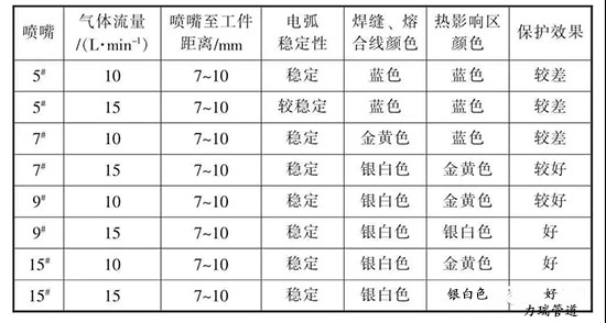 (5)選擇合適的氬弧焊焊槍噴嘴,不僅能保證氣體保護區域內不產生紊流,還能收到理想的保護效果。