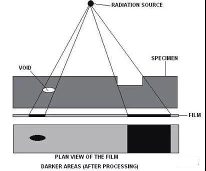 射線照相檢測是利用 X 射線和 γ射線的感光特性,通過射線源發出的射線穿過受檢材料或工件在射線照相底片上感光,射線在通過受檢材料或工件的缺陷部位后在底片上的感光與正常的區域存在差異,由此來判定被檢材料和工件的內部是否存在缺陷,從而在不破壞或不損害被檢材料和工件的情況下,評估其質量和使用價值。