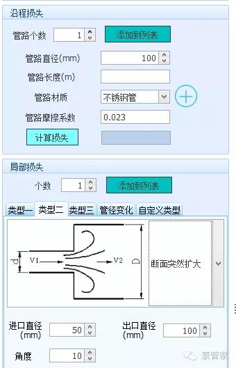 可利用現(xiàn)有軟件, 計算出管路沿程損失和管路局部損失, 如義維開發(fā)的的選型軟件系統(tǒng), 以方便計算。