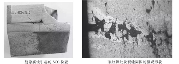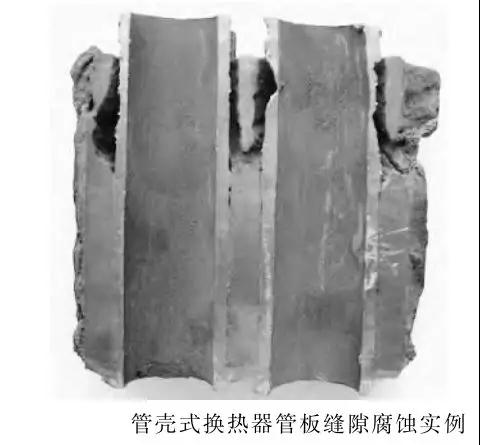 縫隙腐蝕往往發生在螺栓、墊片、設備與接管的法蘭面等機械連接的構件所形成的縫隙部位,管殼式換熱器管板與管束連接部位,設備焊接缺陷如未焊透和咬邊等也是縫隙腐蝕的多發部位。這些部位通常存在較大的工作應力或焊接殘余應力,在應力作用下,縫隙腐蝕可使局部介質形成材料的 SCC 敏感環境,腐蝕轉變 SCC 敏感性,加速了結構的破壞。另外,在設備運行中產生的腐蝕產物、沉積物、碎屑、污泥和結垢附著在金屬表面形成的縫隙也會發生縫隙腐蝕。