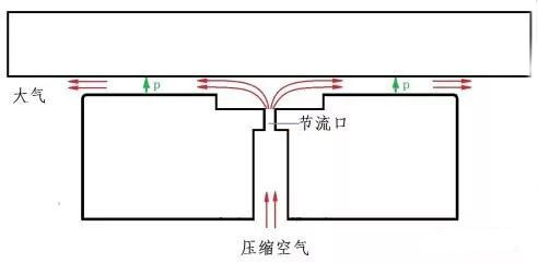 空氣靜壓軸承的壓力空氣膜是由外部的壓縮空氣通過節流器導入滑動副表面之間形成,見圖2。空氣靜壓軸承需要潔凈的外部氣源。