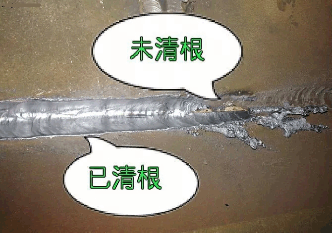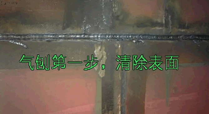 二、深度清理,仔細(xì)刨除加在焊縫中間的焊渣,氣孔。刨到焊縫成銀白色,無(wú)缺陷為止。
