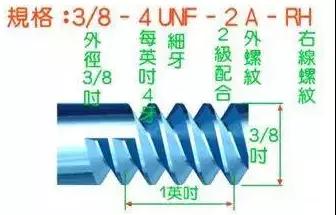 由美國、英國、加拿大三國共同制訂,為目前常用之英制螺紋。 螺紋角亦為 60 度,規(guī)格以每英寸有幾牙表示。此種螺紋可分為粗牙(UNC);細牙(UNF);特細牙(UNEF)。表示法如  1/2-10UNC。(1/2:外徑;10:每寸牙數(shù);UNC 代號)。