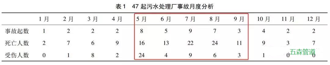 夏季是污水處理廠有毒氣體產(chǎn)生的高峰季節(jié),也是污水處理廠事故高發(fā)的季節(jié),之前作者也建議,不要在夏季去做一些清淤之類的無(wú)關(guān)生產(chǎn)的小事,可是一些管理人員安全意識(shí)淡薄,導(dǎo)致了很多生命的消逝!《我國(guó)污水處理廠事故統(tǒng)計(jì)分析與對(duì)策研究》[1]中統(tǒng)計(jì)了10年間的47例污水處理事故并做了分析: