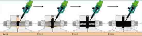 5、逆焊法。利用焊縫收縮的原理,將泄漏裂縫分段逆向逐一焊補,使其裂縫收縮不漏有利焊道形成的堵漏方法,簡稱逆焊法,也叫做分段逆向焊法。這種方法適用于低中壓管道的堵漏。