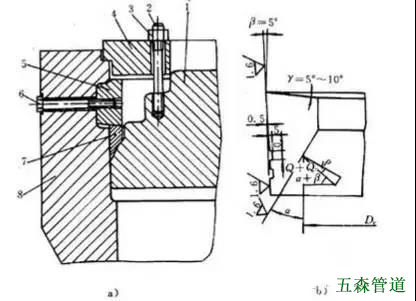 6-軟金屬墊片;7-圓筒端部;8-螺栓;9-托環